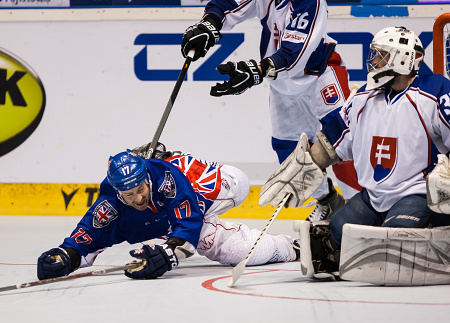 Britové se rychle dostali do vedení, když se ani ne po třech odehraných minutách prosadil Rob Shelton. Slováci ve zbytku první čtvrtiny svého soupeře tlačili, vyrovnat ovšem nedokázali. Naši východní sousedé pokračovali ve svém tlaku i v následující periodě, Birch ale držel svůj tým.
